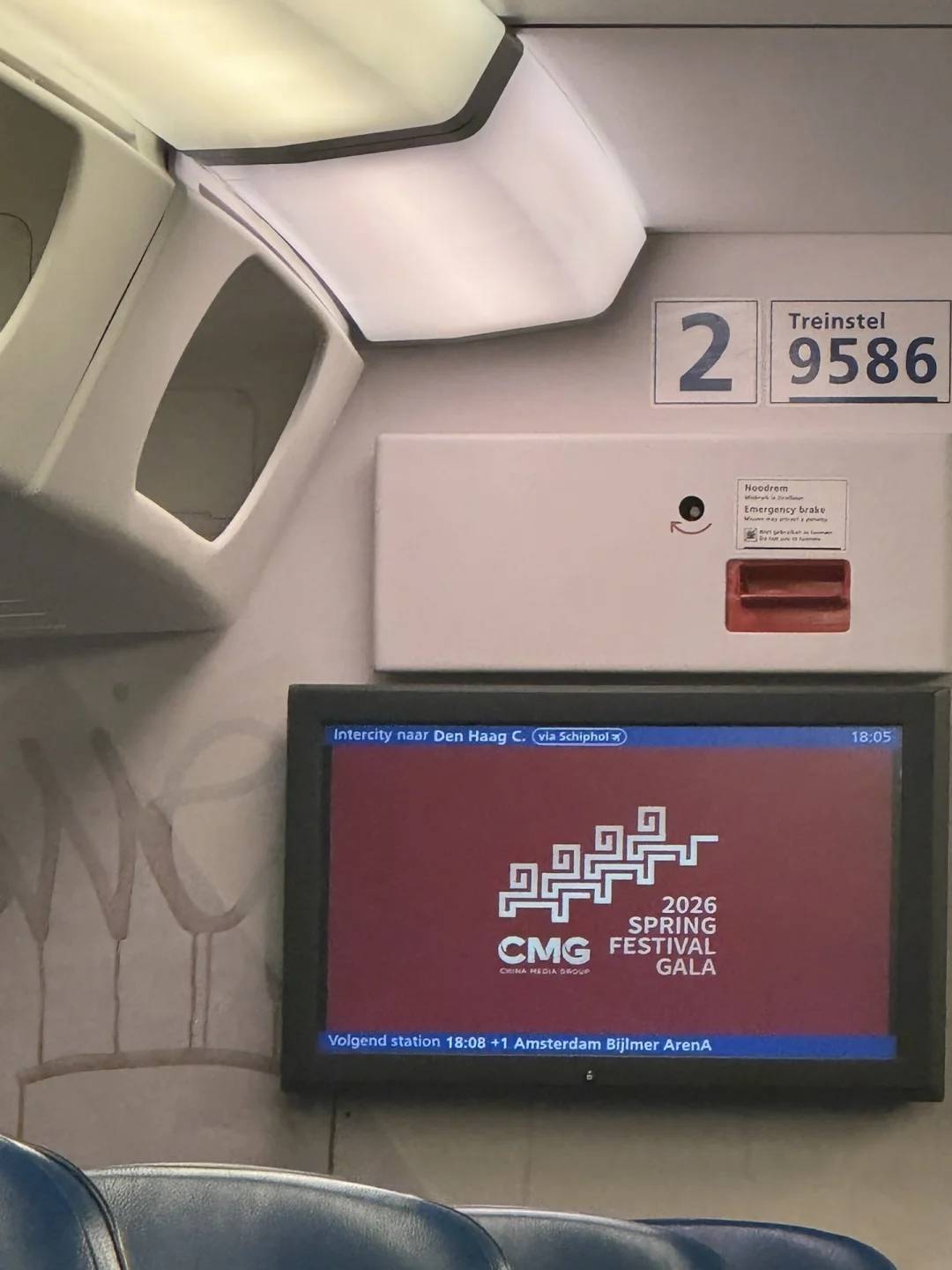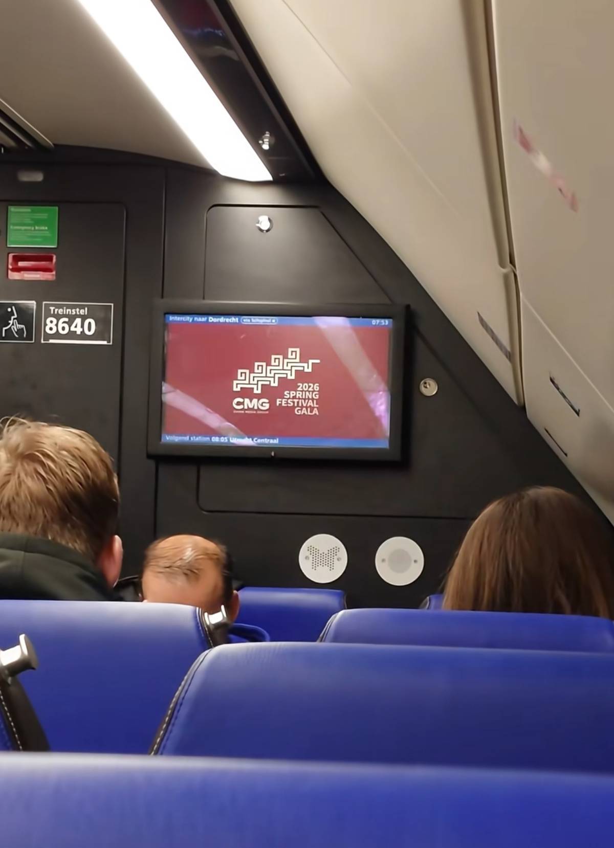 荷兰火车上播放央视春晚预告片(网友鱼小水供图)